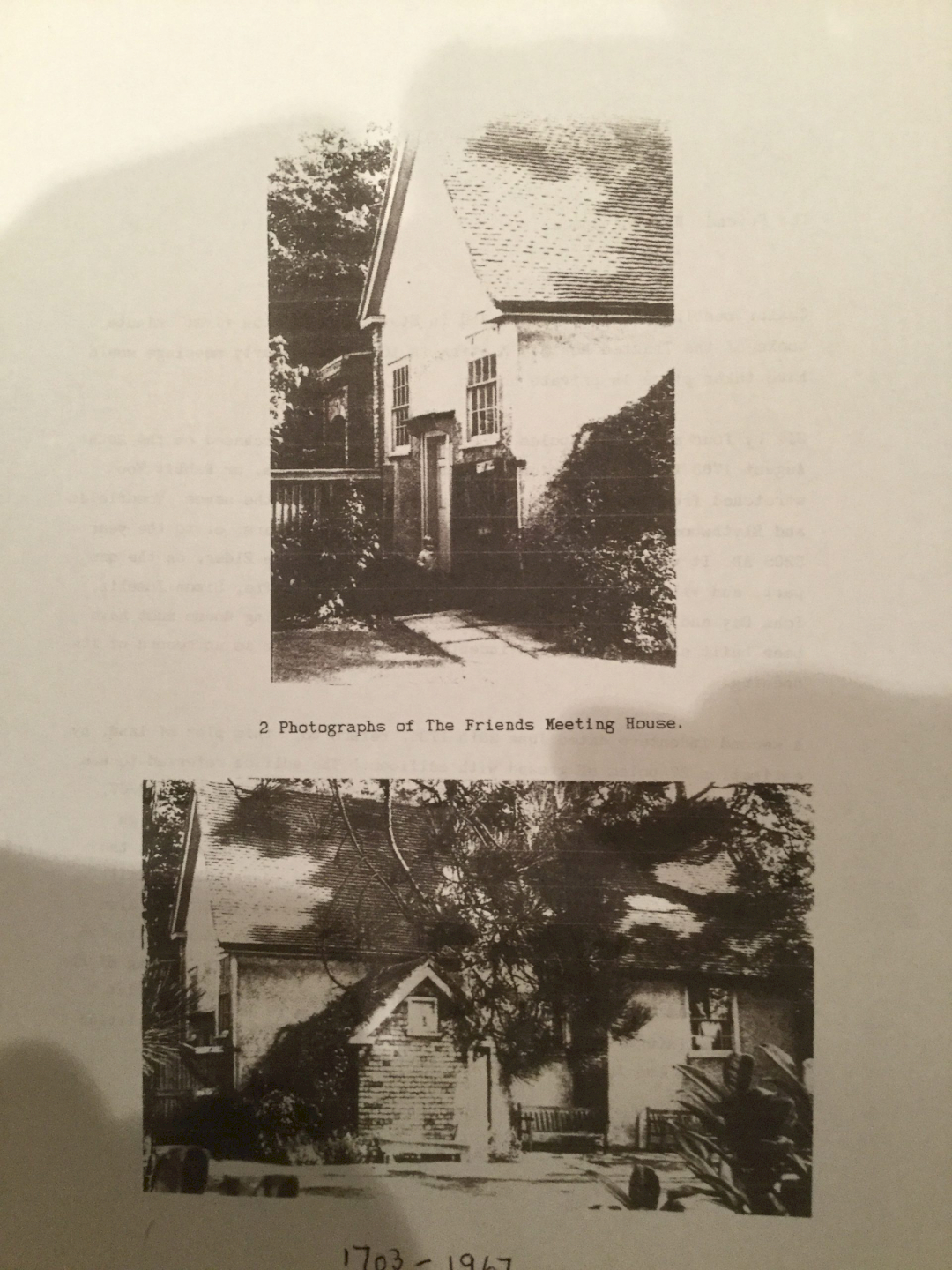 ‘Friends of long ago were represented too, not only by their tombstones ranged round the edge of the garden, but also by the concrete raft constructed at considerable additional cost to prevent the re-sited Meeting House subsiding into the graves of the old burial ground. And if this link between past and present seemed too remote, a Friend recalled just before Meeting that more than 75 years ago he had first worshipped here with his family and only one other Friend.